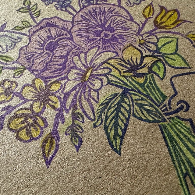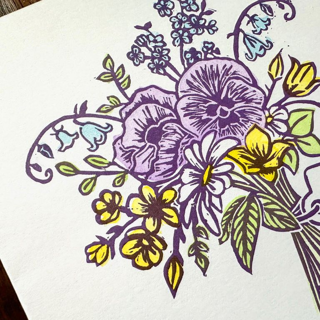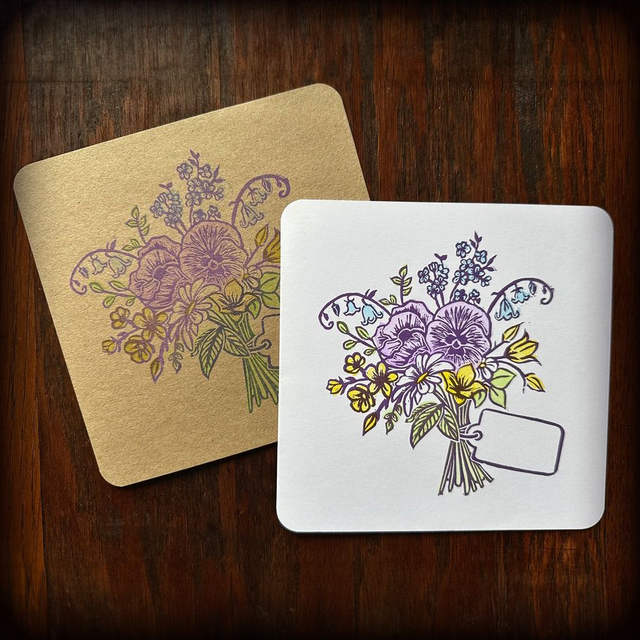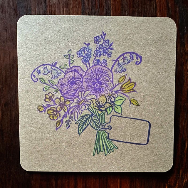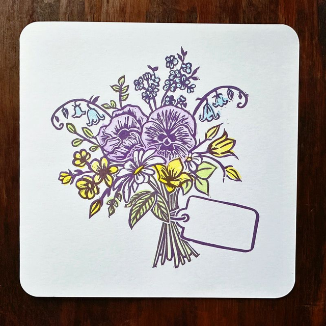 Beautiful flower bouquet hand printed with coloured floral details. What will you write on the tag?